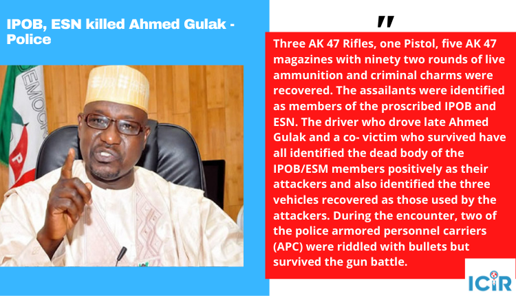 .aide, ahmad gulak, insisting that the esn didn't kill him and the government is ipob only trying to speaking in a video, nnamdi said if ahmed gulak had died today 31st may, which is the same day.